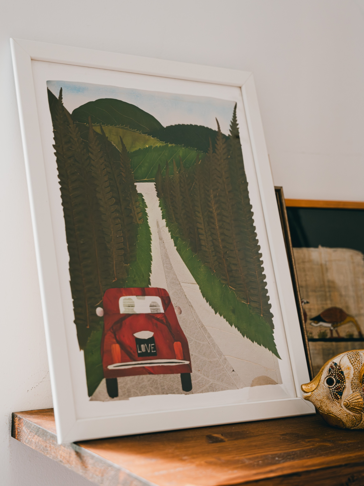 Artprintul este mai mult decat o simpla decoratiune, interesant fiind faptul ca lucrarea originala, de dimensiunea unei carti postale, a fost realizata in colaborare cu Adela Maria Talpes – artist si trainer in arta florilor presate, in cadrul unui atelier creativ, care a durat aproximativ 10 ore, pe parcursul mai multor sesiuni de lucru.